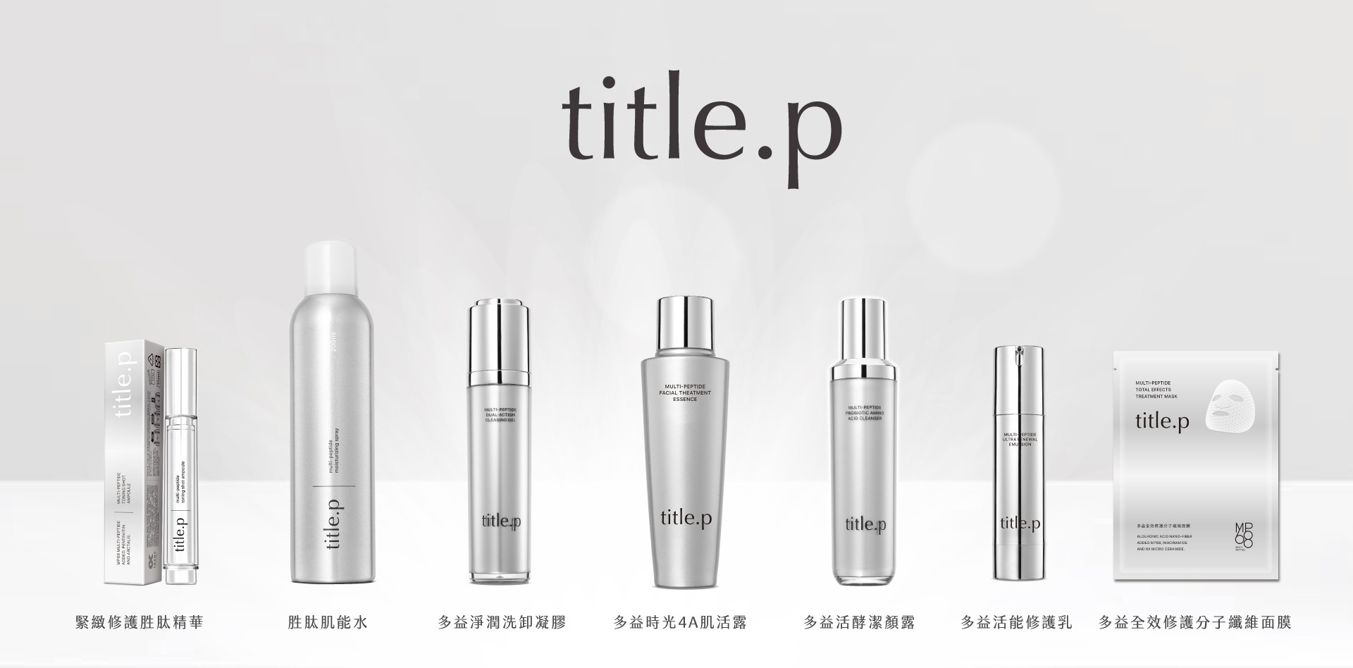 【title.p】是來自台灣的保養品牌,秉持「好的保養,對的保養」理念,歷經8年研發出核心成分MP68多益肽。MP68多益肽是一種天然小分子活性胜肽,從多種海洋生物中萃取,能高效滲透至肌膚底層,修護乾燥、鬆弛、敏感等問題,提升肌膚穩定度與吸收力,適用於各種膚質。